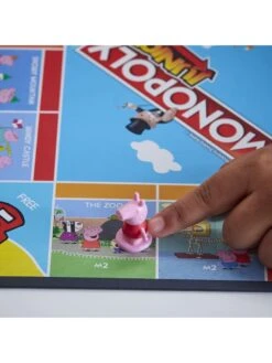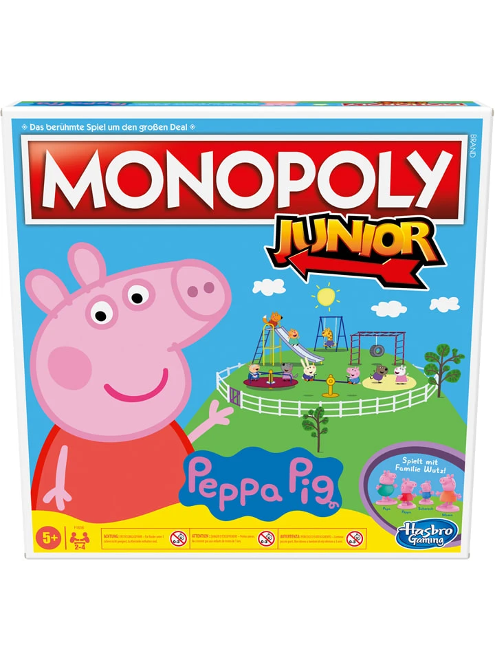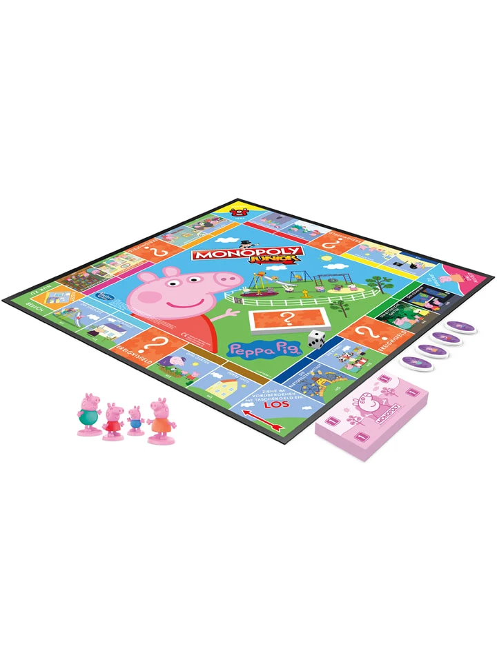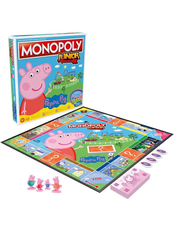 Peppa hat ganz viel Spaß mit ihrer Familie und bei Monopoly Junior Peppa Pig können Kinder gemeinsam mit der Familie Wutz viel Spaß beim Spielen erleben. Die Spieler können Peppa Wutz, Schorsch Wutz, Mama Wutz oder Papa Wutz als Spielfigur wählen und mit dieser um den Spielplan ziehen, während sie Grundstücke wie den Rodelberg, Peppas Haus oder Opas Garten kaufen.