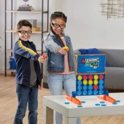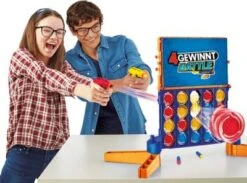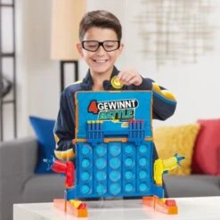 Das beliebte „Vier gewinnt“ in einer neuen Abwandlung! Bei diesem Spiel von Hasbro treffen der Klassiker und Nerf aufeinander. Bei „4 Gewinnt Battle“ schießen die Spieler mit den enthaltenen Nerf Blastern strategisch geschickt auf die bunten Scheiben. Ziel ist es als Erster vier Scheiben der eigenen Farbe in eine Reihe zu bringen – genau wie beim Klassiker. Herausgeschossene Scheiben werden schnell zurück in das Ladefach an der Oberseite der Rasterwand gesteckt. Bei diesem Spiel geht es um Zielsicherheit und Geschick!