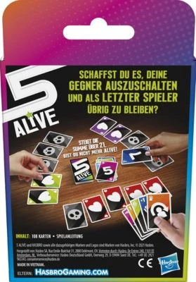 Bei dem spannenden Kartenspiel „Five Alive“ von Hasbro muss man besonders strategisch vorgehen! Hier dĂĽrfen die eigenen Karten zusammen nicht mehr als 21 ergeben, sonst hat man verloren. Dank vieler verschiedener Spielversionen nimmt der SpaĂź kein Ende!