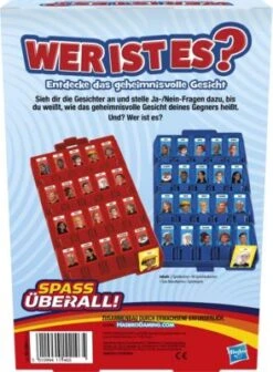 Der Hasbro Kinderspielklassiker „Wer ist es?“ im neu designten Kompaktformat präsentiert sich als idealer Reisebegleiter. Kleine Detektiv*innen mĂĽssen die Identität des geheimnisvollen Gesichtes auf der Karte des GegenĂĽbers erraten. Wer wird zuerst fĂĽndig? Trägt die*der Verdächtige eine Brille oder hat eine Glatze? Durch clevere Fragen und pfiffiges Kombinieren scheidet ein Gesicht nach dem anderen aus. Wer glaubt, zu wissen, wer auf der Ratekarte abgebildet ist, äuĂźert eine Vermutung. Ist diese jedoch falsch, hat man das Spiel verloren.