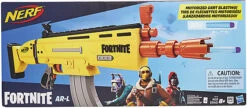Der Nerf Fortnite AR-L Blaster hat den in Fortnite verwendeten Blaster zum Vorbild und dasselbe Aussehen und dieselben Farben wie der Blaster im beliebten Videospiel. Dieser Nerf Elite Blaster mit motorisiertem Dart-Abschuss lädt dazu ein, Fortnite im echten Leben nachzuspielen. Der Motor wird mit dem Beschleunigungs-Knopf gestartet und durch das Betätigen des Abzuges wird ein Dart abgefeuert.