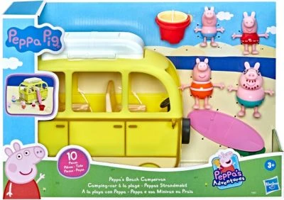 Das tolle Spielset „Peppas Strandmobil“ aus der „Peppa’s Adventures“-Kollektion von Hasbro inspiriert kleine Fans des beliebten Schweinchens zu aufregenden Spielideen! In dem Set sind ein Fahrzeug mit Transportbox, ein Surfboard, ein Grill und vier Spielfiguren enthalten. So steht einem Ausflug zum Strand nichts mehr im Wege! Hier können Peppa und ihre Familie fröhlich planschen, surfen und leckeres Essen grillen.