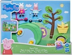 Aus der Serie Peppas Adventures von Hasbro kommt hier das Picknick mit Peppas Spielset. Peppa und ihre Freundin Luzie machen einen Ausflug und können dabei grillen oder leckeren Kuchen essen. Der Teich enhält niedliche Enten, die beim Drehen am Rädchen sogar schwimmen!