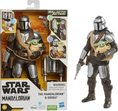 Mit diesem Hasbro Galactic Action Figurenset mit dem Mandalorianer und Grogu können sich Kinder spannende Abenteuer in der Star Wars Galaxis ausdenken. Die 15 gesprochenen Sätze, Soundeffekte und verschiedenen Spielfunktionen werden den Mandalorianer und Grogu schon bald zu ständigen Begleitern beim Spielen machen. Sie können einzeln als Figuren zum Spielen verwendet und Grogu kann in die Tasche des Mandalorianers gesteckt werden, um spezielle Geräusche und Sätze zu hören. Mit dem abnehmbaren Jetpack werden sogar noch mehr Sätze und Geräusche aktiviert. So wird die Fantasie der Kinder angespornt, um sich spielerisch in eine weit, weit entfernte Galaxis zu begeben.